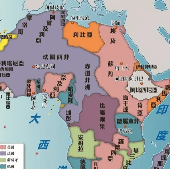 19世纪时期,法国从西北和东南两个方向,推进在非洲的殖民活动。法国在非洲西北部,控制了毛里塔尼亚、阿尔及利亚、赤道非洲、突尼斯、摩洛哥等地,建立了庞大的法属西非殖民地。法国在非洲东南部,控制马达加斯加岛,科摩罗群岛,留尼旺岛。