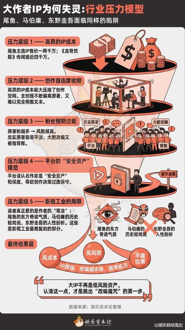 大作者 IP 改编困境或许从来不是“故事不够好”,而是影视工业无法同时满足成本、审查、粉丝、营销、平台上新节奏等多重要求。