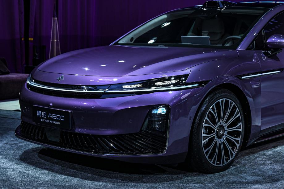 02. 智慧旗舰成都车展发布会现场,广汽昊铂A800惊艳首秀,未动而气场先行。全车长5.13米、宽1.96米、高1.5米,轴距达3.02米,以3.2倍黄金轮轴比,打造出修长车身,极致的前低后高姿态,塑造出贴地飞行的驭风姿态。搭配低调奢华的紫色调,将这款轿车的气场与豪华质感,糅合成独属于广汽昊铂A800的“旗舰符号”。