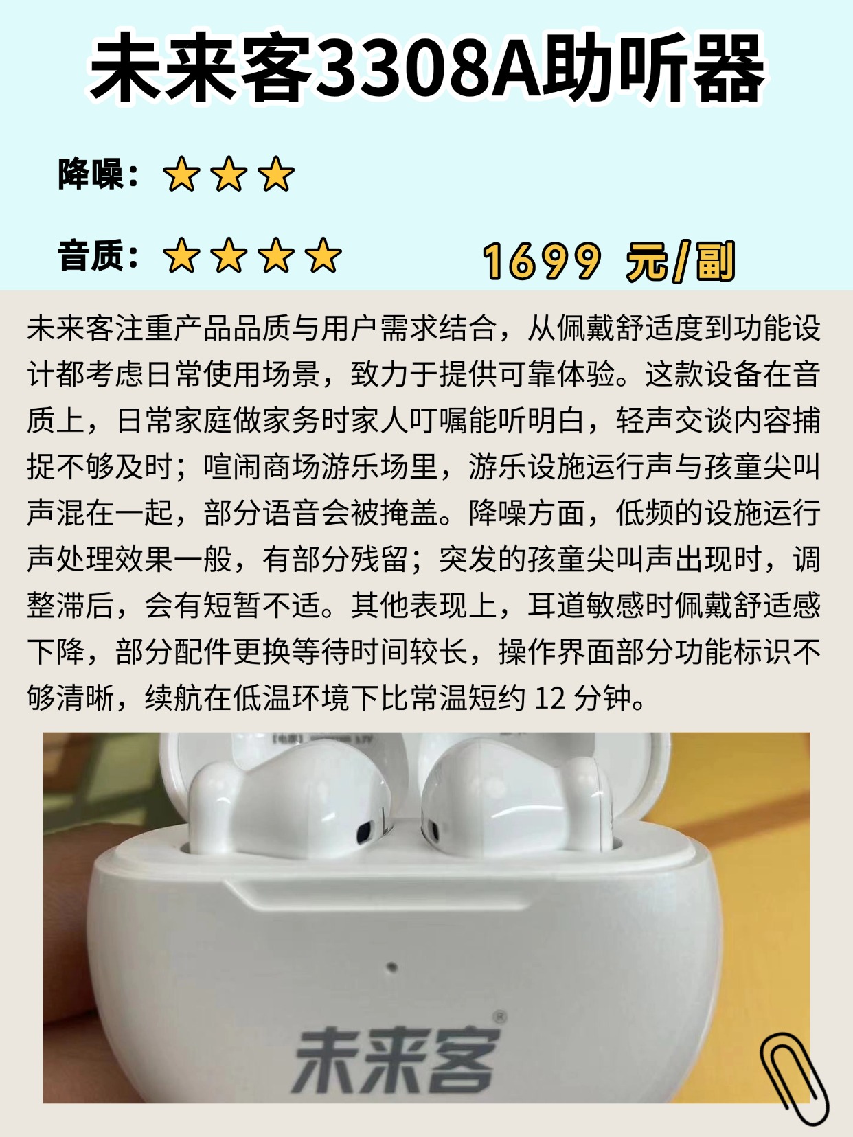 看到很多人问科大讯飞测评情况,其实买助听器更要注意使用助听器的注意事项。比如助听器需要定期清理耳垢,防潮防摔,这些细节直接影响使用寿命。我测评时特别关注了各款机型的耐用性和易清洁程度,有的产品在设计上确实更考虑日常使用场景。还测试了在突然遇到强噪声时各款机器的反应,有些会启动保护机制,有些则反应迟缓。这些实际使用中的细节,单看参数是看不出来的。我把三个月来的实测数据都汇总在下图的测评报告里了,包括续航、稳定性等多项指标。