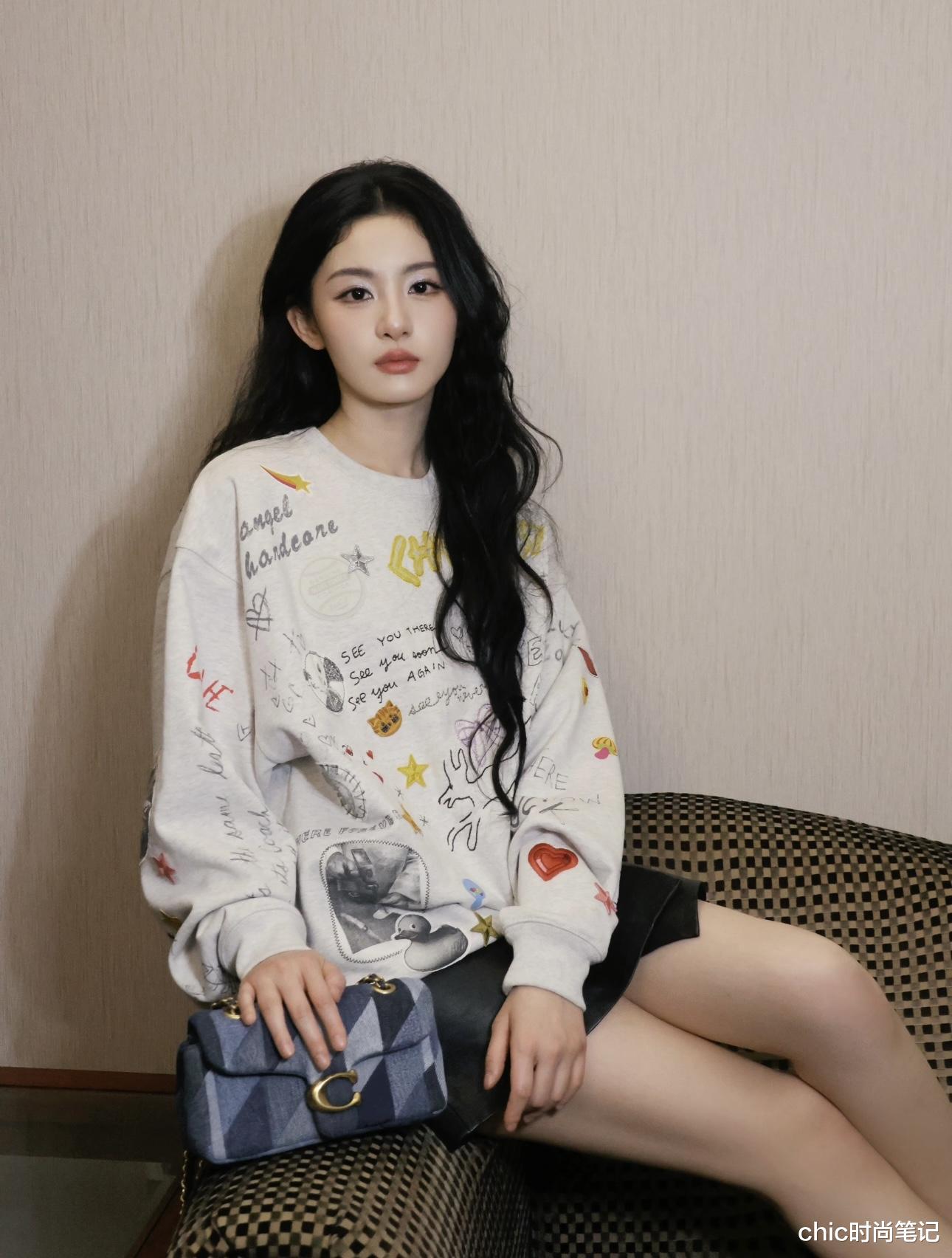 涂鸦款卫衣自带嘻哈和个性,有一种张扬的时尚,搭配上短裙自带辣妹感,超短的裙身完美展现腿部比例,好身材当然要秀出来!