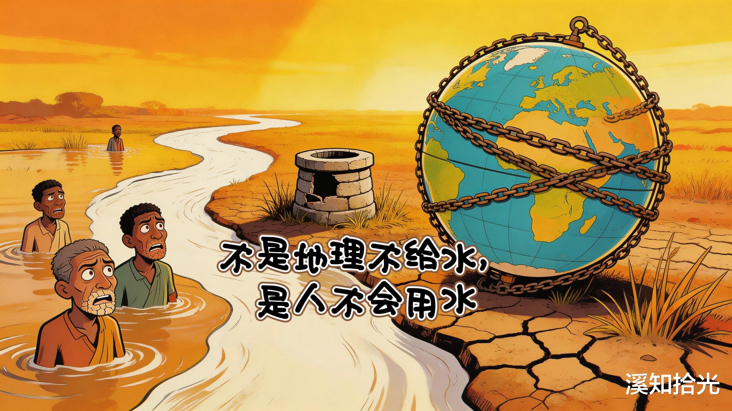 🔥旱季翻脸比翻书还快。洪水退得像渣男消失,留下龟裂的大地和张着嘴的河床。白尼罗河?那是个季节性骗子,枯水期瘦成小溪。地下水其实还挺丰富的,但是开采技术还处于挖坑看运气的原始阶段。村民凌晨四点出发,扛桶徒步十几公里,排队三小时,只为领回一桶飘着藻类、混着牛尿的泥汤。这时候你才懂:地理决定论的真义不是“有水万事足”,而是“有水没技术,等于没水”。