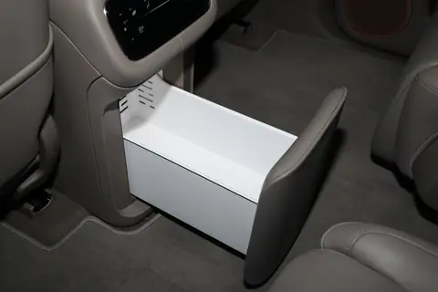 配置方面,智己 LS9 2026 款 66 Ultra 做到了全系拉满,无需纠结基础款和旗舰款的差异。舒适性配置上,该车配备了 4D 机械按摩座椅,前排和第二排座椅都支持加热、通风和按摩功能,第三排座椅也配备了加热功能,在寒冷的冬季能够为乘客提供温暖舒适的乘坐体验。车内还标配了三零重力座椅,能够让乘客在长途旅行中得到充分放松,缓解疲劳。双开门冰箱的加入更是提升了实用性,支持加热、冷藏和冷冻功能,无论是夏天的冷饮还是冬天的热饮都能随时享用。音响系统方面,该车可选装 B&O 豪华音响系统,配备 25 个扬声器和 7.1.4 音响布局,功放最大输出功率可达 3472W,能够为乘客带来沉浸式的听觉享受。此外,车内还配备了瞬净新风系统和 ERNC 2.0 噪音控制系统,有效过滤车内有害物质,同时降低行驶过程中的噪音,营造出安静舒适的车内环境。