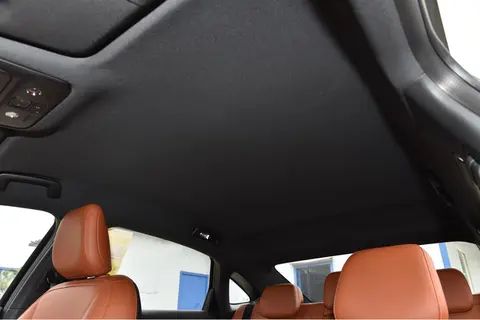 副仪表台经过重新设计,回形空调出风口和物理按键布局清晰,操作起来比较顺手。中控台面及经常接触的区域使用亲肤触感的 PU 材质,触感细腻,且具有抗菌特性。中控台、门板等部位进行了软包处理,膝盖容易碰到的地方也用皮质包裹,整体质感在同价位车型中属于较好水平。部分车型配备的石纹透光工艺曜石藏金饰板,为车内增添了一些精致感。