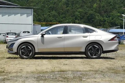 车身侧面,溜背造型让整体线条从车头延伸至车尾,4835mm 的车长配合 2800mm 轴距,带来了接近 B 级车的视觉感受。18 寸星旋轮毂设计灵感源自星空,有精车星旋、低风阻铝合金等不同样式可供选择。半隐藏式门把手使车身侧面更显流畅,车顶采用无缝激光焊接工艺,对车身强度有一定增强作用。