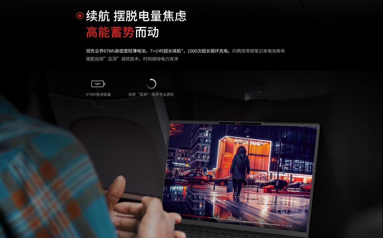 系统响应速度更是打破认知:通过软硬件深度优化,实现9秒开机、2秒唤醒的行业突破,从公文包拿出设备到进入工作状态,不过喝口水的功夫。搭配67Wh高密度电池与自研"澎湃"调优技术,典型办公场景下续航长达10小时,早出晚归的差旅全程无需携带充电器。
