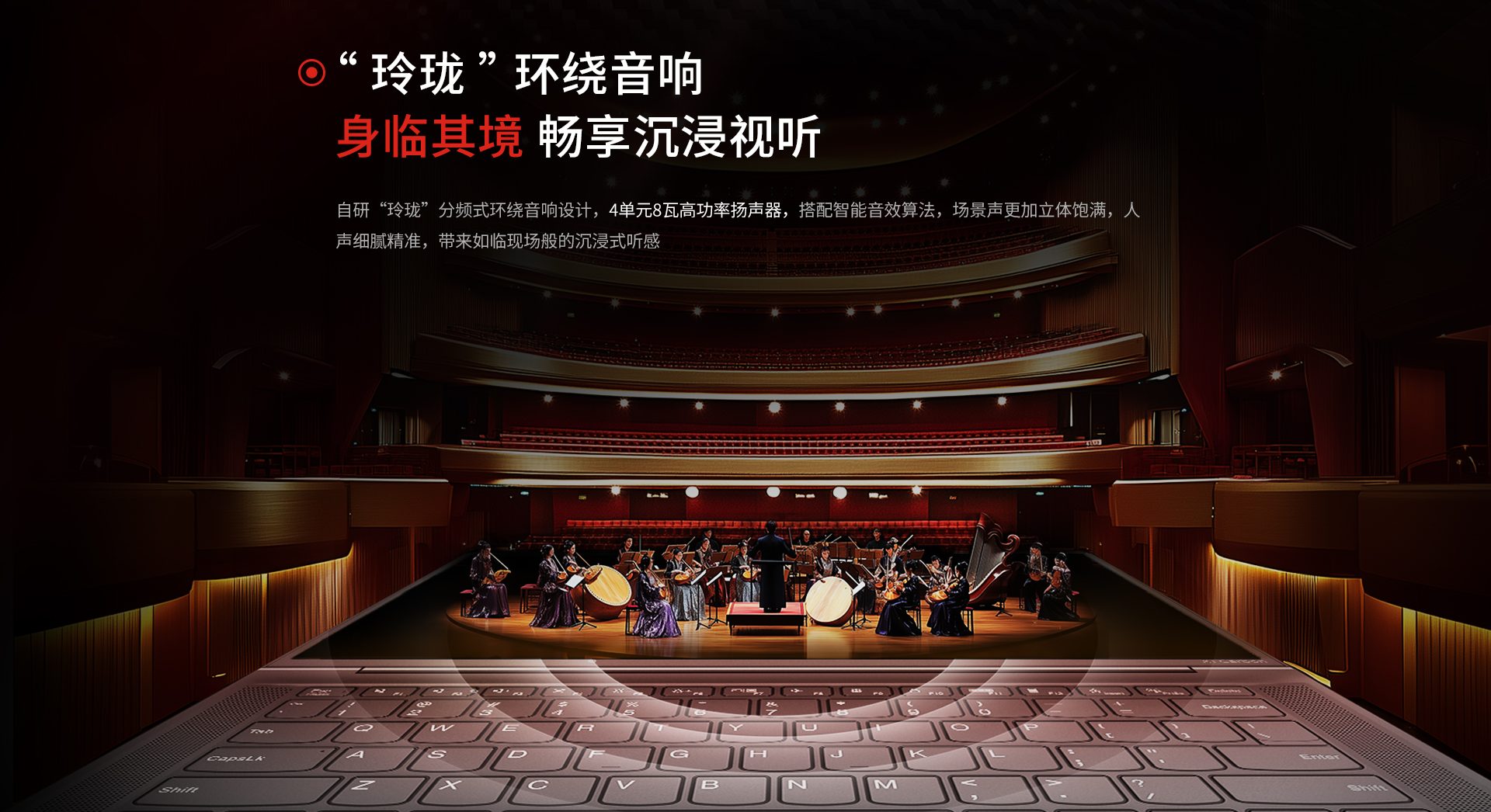音频体验同样专业:自研"玲珑"分频式环绕音响系统搭配4单元8瓦扬声器,AI智能音效算法能自动优化人声清晰度,远程视频会议时对方的每句话都清晰可辨,仿佛面对面沟通。防泼溅背光键盘在咖啡馆、机场等场景都能从容输入,全功能USB-C接口搭配附赠的4合1拓展坞,外接投影、移动硬盘一键搞定。