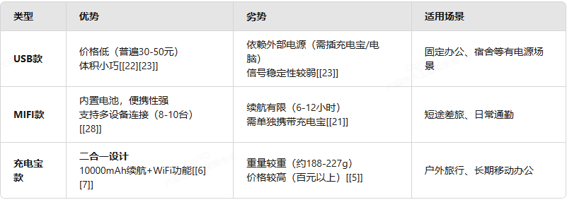 随身WiFi很受欢迎!但面对USB款、MIFI款(自带电池)、充电宝款三大主流类型,大家又该如何选择最适合自己的设备?本文结合实测数据和用户反馈,帮你一次性理清思路!