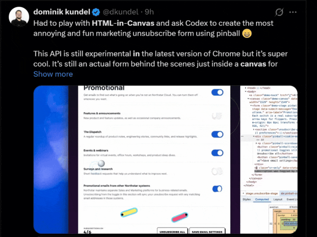 当然最重要的还是,HTML-in-Canvas让大家意识到,生成式AI才是UI的终极形态。