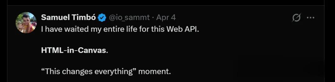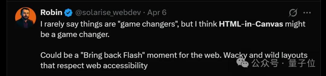 参考链接:[1]https://x.com/sawyerhood/status/2042271915658854783?s=20[2]https://x.com/tkm_hmng8/status/2042186512545272290?s=20[3]https://x.com/search?q=html-in-canvas
