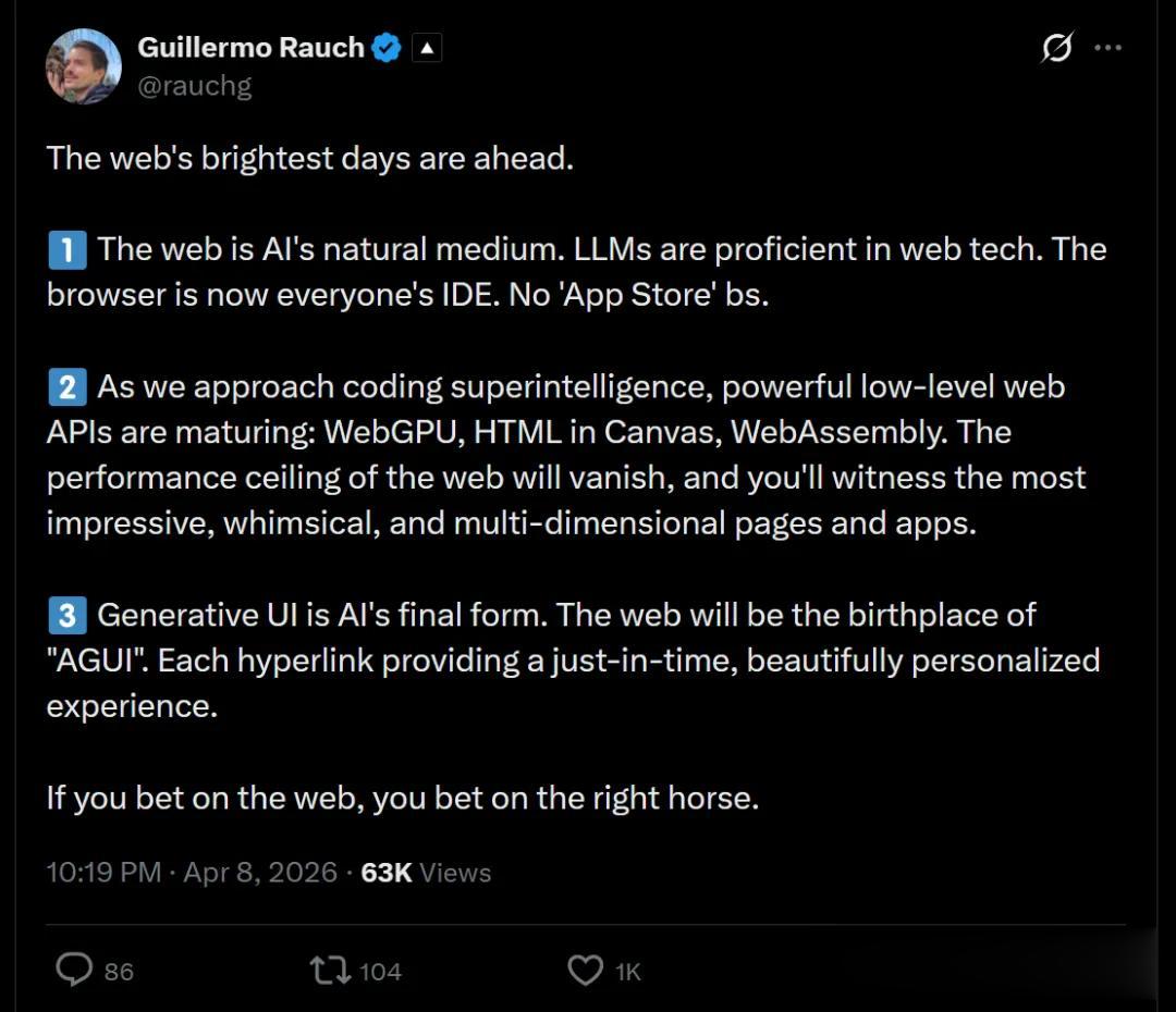 无怪乎Vercel CEO感叹,网络最辉煌的日子还在前方。