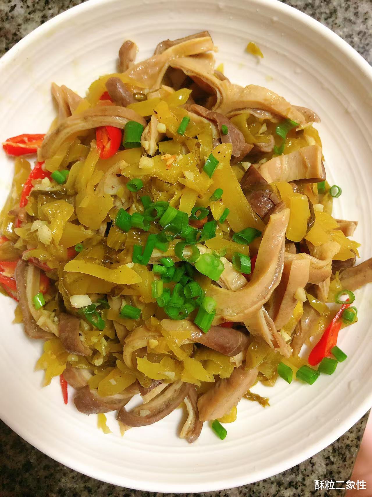 端上桌,白米饭先压实,再狠狠浇一勺汤汁,米粒瞬间染成金黄,酸菜丁钻进去躲猫猫。第一口咬到肚条,外层吸饱酸汁,内里保留脆弹,“咯吱”一声在齿间回弹;酸菜咸酸带劲,却掩不住那股发酵后的甘甜,辣意只在喉间轻轻拍你一掌,紧接着就被米饭抚平。我原计划只吃一碗,结果锅铲没放下,第三碗已经见底,撑到扶墙还在想:要是明早煮稠稀饭,把剩的酸菜肚条往中间一埋,热汽一熏,会不会直接香醒整个楼道?