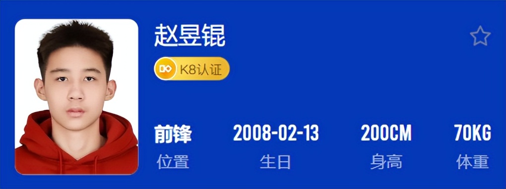 赵昱锟是2008年出生的球员,前年因为骨折的原因耽误了一年,也使得他缺席了上赛季的耐高联赛,不过他是玉岩中学的球员。