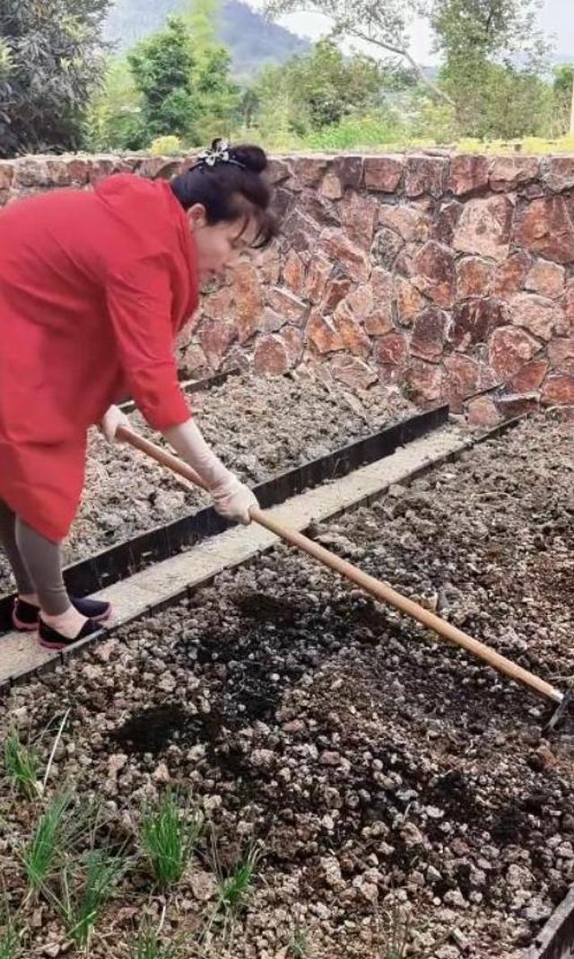 可万万没想到如今她竟然穿着布鞋,扛着大锄头去种地了!