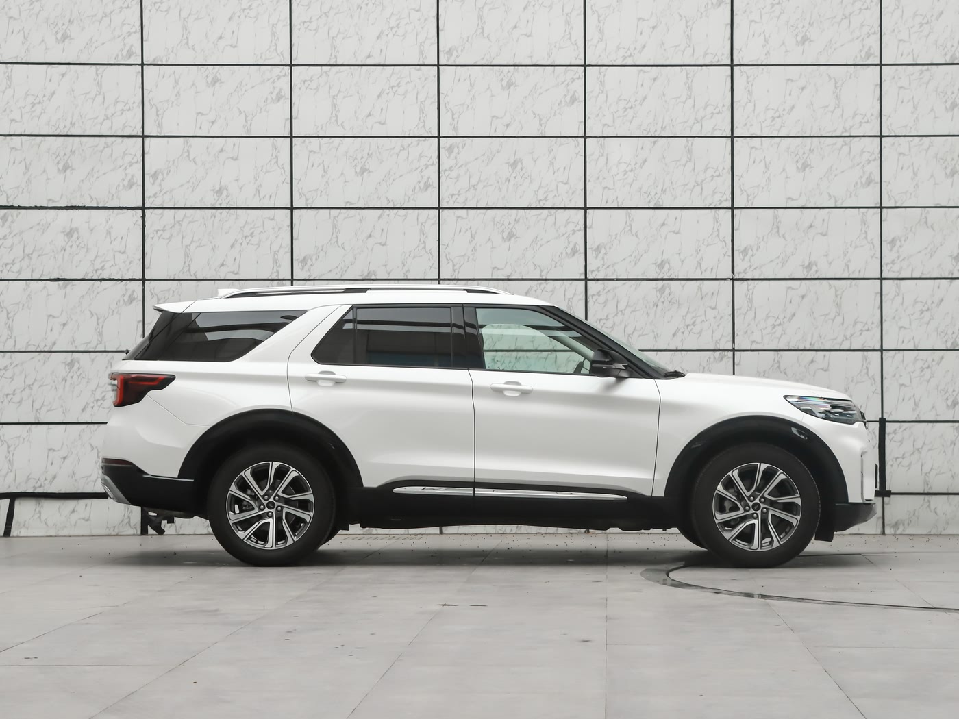 途昂Pro采用“未来机甲”设计语言,5158mm超长车身搭配2980mm轴距,营造出霸气视觉效果。前脸贯穿式LED灯带与发光格栅融合,夜间点亮后如“璀璨猛兽”;侧面20英寸多辐轮毂与肌肉感腰线强化稳重气质;尾部层次分明,熏黑尾灯与双边排气彰显低调奢华。探险者则延续美式力量美学,3025mm轴距下采用短前悬设计,六边形蜂窝进气格栅搭配分体式LED大灯,塑造出“陆地巡洋舰”的压迫感。侧身线条简洁流畅,C柱悬浮式设计增添时尚感;尾部双C型尾灯与双边双出排气凸显运动基因。两款车型外观差异显著:途昂Pro以科技感与精致度取胜,探险者则用原始野性征服越野爱好者。
