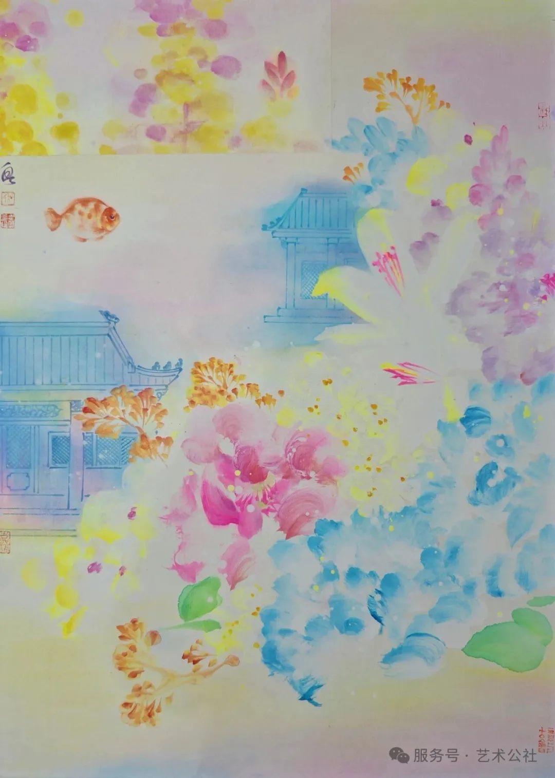 吴志兴善于运用丰富的色彩构建起和谐而富有张力的画面,在他的作品中,色彩不仅是视觉的享受,更是生命情感的外化。通过对色彩的冷暖对比、明暗变化以及互补关系的精准把握,描绘出层次丰富的画面效果,赋予生命以直观的视觉形态与情感冲击。繁花的绚烂、古建筑的厚重、走兽鱼儿的灵动等都在色彩的交织中焕发出独特的生命力,成为生命历程的隐喻与映照。