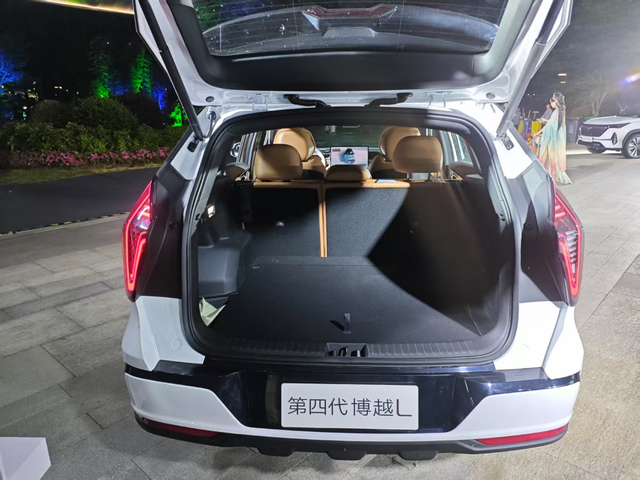 车尾部分,第四代博越L依然采用了贯穿式尾灯设计,不过灯组内部结构进行了调整,同时牌照框从尾门位置转移到了后保险杠区域,让整个尾部看起来更加简洁。