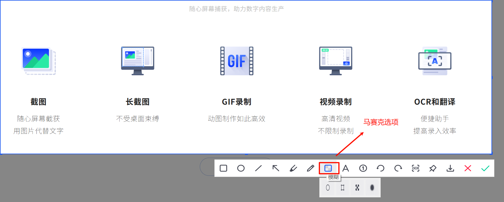 触发截图后,马赛克所处位置如下所示: