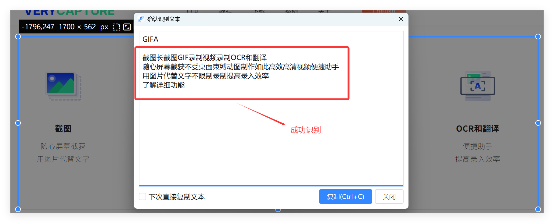 尽管 VeryCapture号称有 OCR文字识别功能,但我尝试的时候却未成功:
