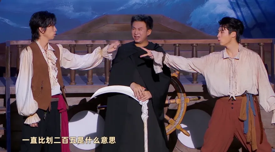 死神要带走兄弟二人。接下来便是跟死神的,非常无厘头的抗争。到这里,一直很好笑,这个节目还很好看!然后,三人从船舱斗到船头。也就是这个时候,由于演员的失误扯到了船帆的开关。那个作为最后一幕重要背景的帆滑落了,挡住了船头的全部场景。