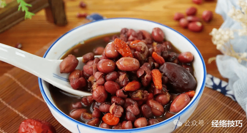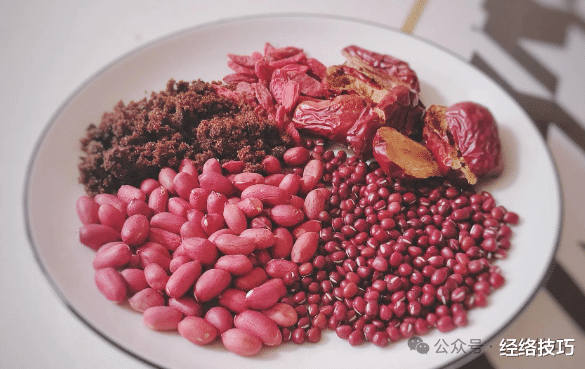 这汤所用到的五种红色食材都较为常见,包含红枣、枸杞、红衣花生、红豆以及红糖。