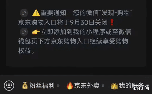 9月30日,微信“发现-购物”的京东一级入口正式关闭,这一调整源于2022年双方签署的三年战略合作协议到期。