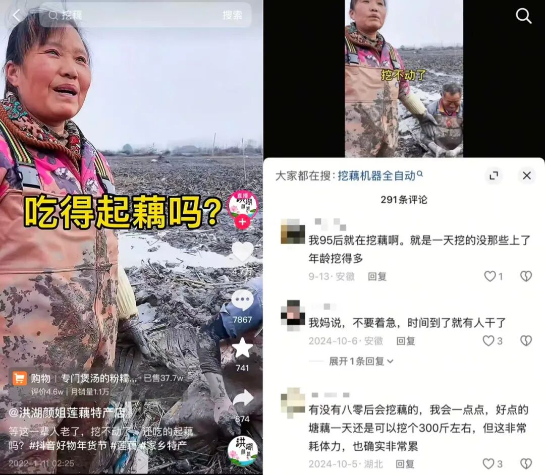 “等我们这辈人挖不动了,大家还吃得起藕吗?”在抖音账号的置顶视频里,颜姐曾这样问道。