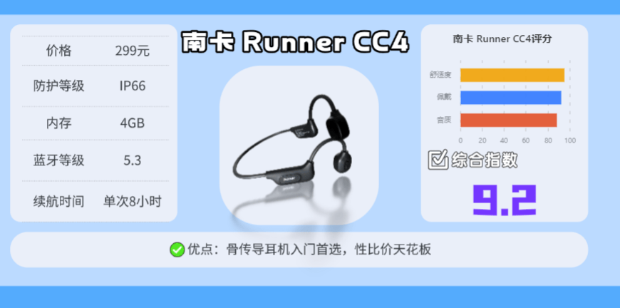 从配置和体验感来看,南卡RunnerCC4是南卡的用心之作,价格也相当实惠,是骨传导耳机当中的入门首选。