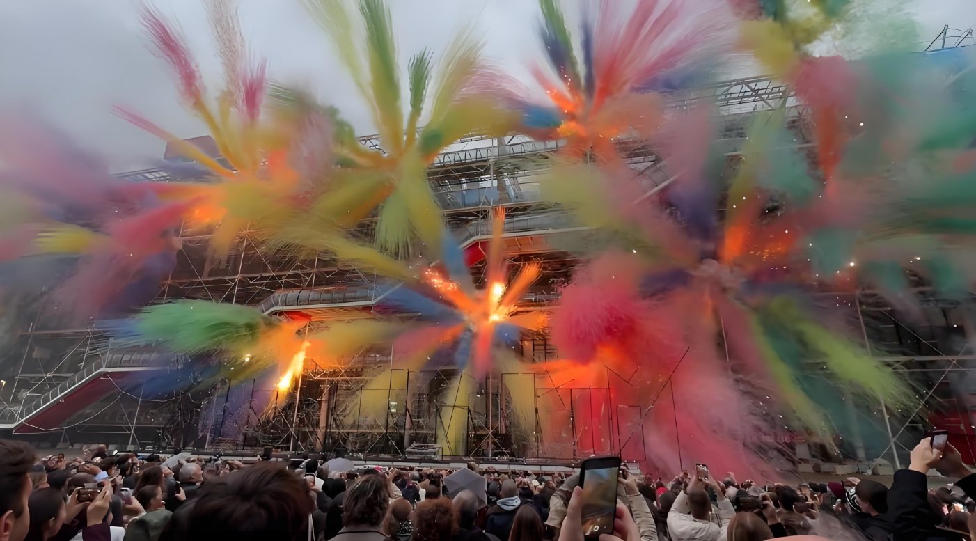 10月22日,蔡国强受巴黎蓬皮杜中心邀请,为其闭馆翻新(暂别五年)创作《最后的狂欢》白天烟花秀。表演持续20分钟,以钢架结构为“画布”,投射动态色彩光影。然而现场效果引发争议: