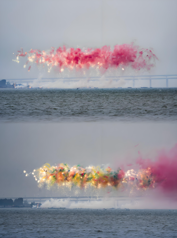 观众两极反应:部分观众鼓掌称赞艺术性,但更多质疑其环保代价,如“五彩斑斓的黑烟加剧局部雾霾”。