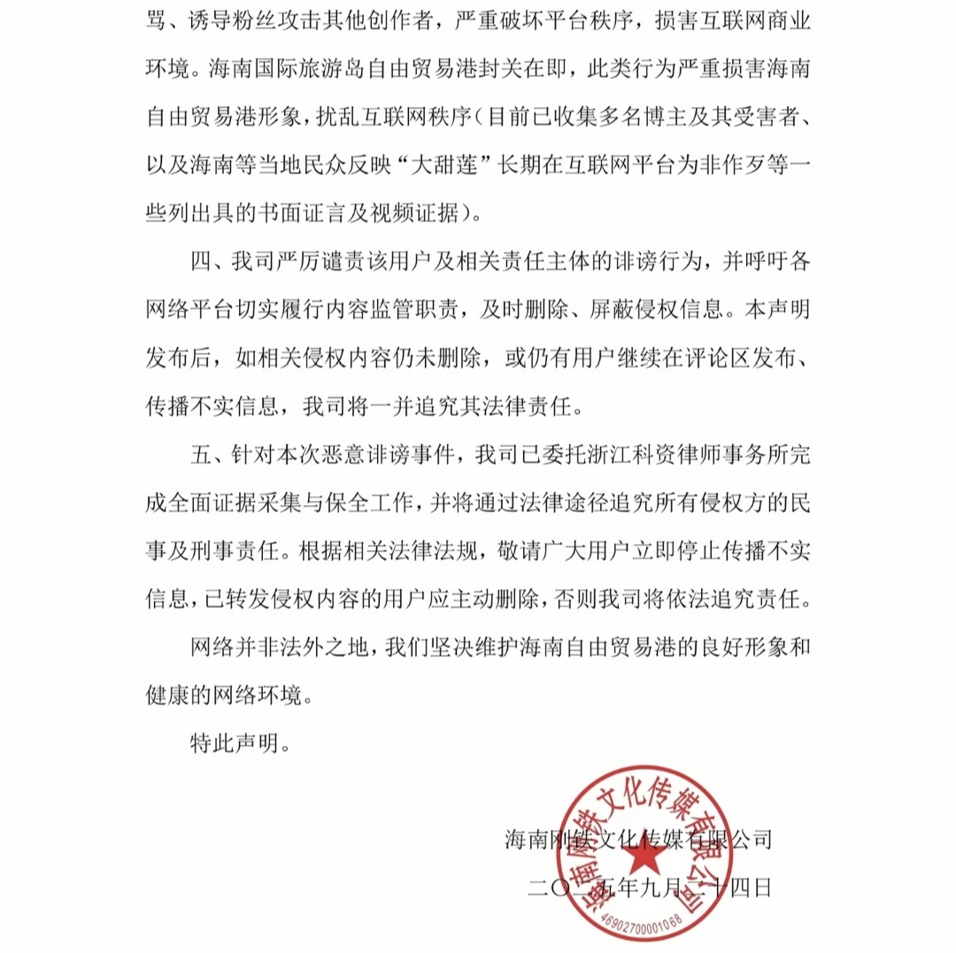 刘亦伦表示,这位所谓的博主甜莲,所称拖欠的3.8万元劳务费均不属实,在互联网上的发声已经对他构成了侵权。
