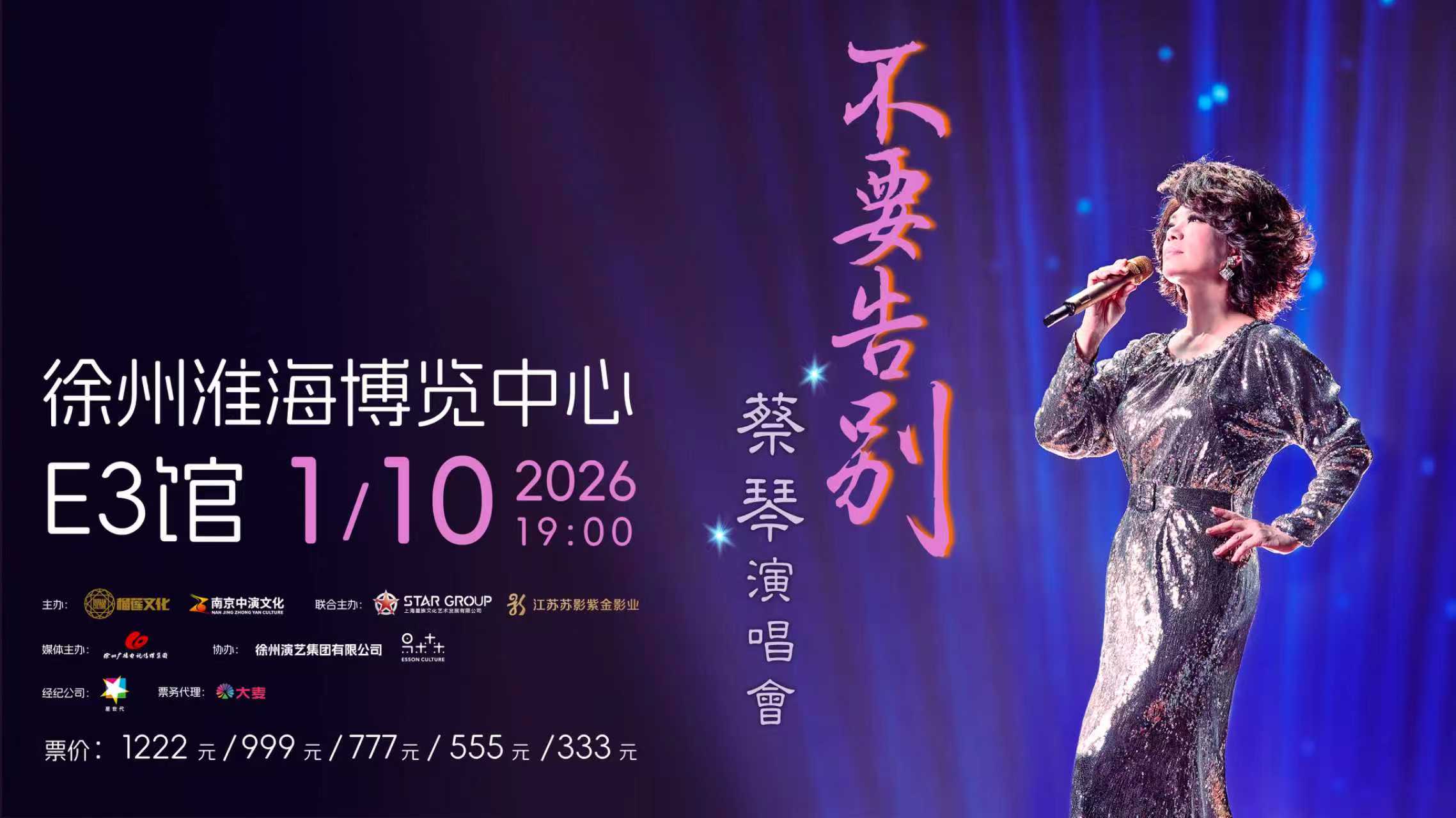 2026年1月10日,新年伊始,由榴莲文化、南京中演文化主办的蔡琴“不要告别”演唱会将在徐州温暖开唱。这不仅是一场万众瞩目的歌坛盛宴,也是蔡琴大型巡回演唱会的最终章。