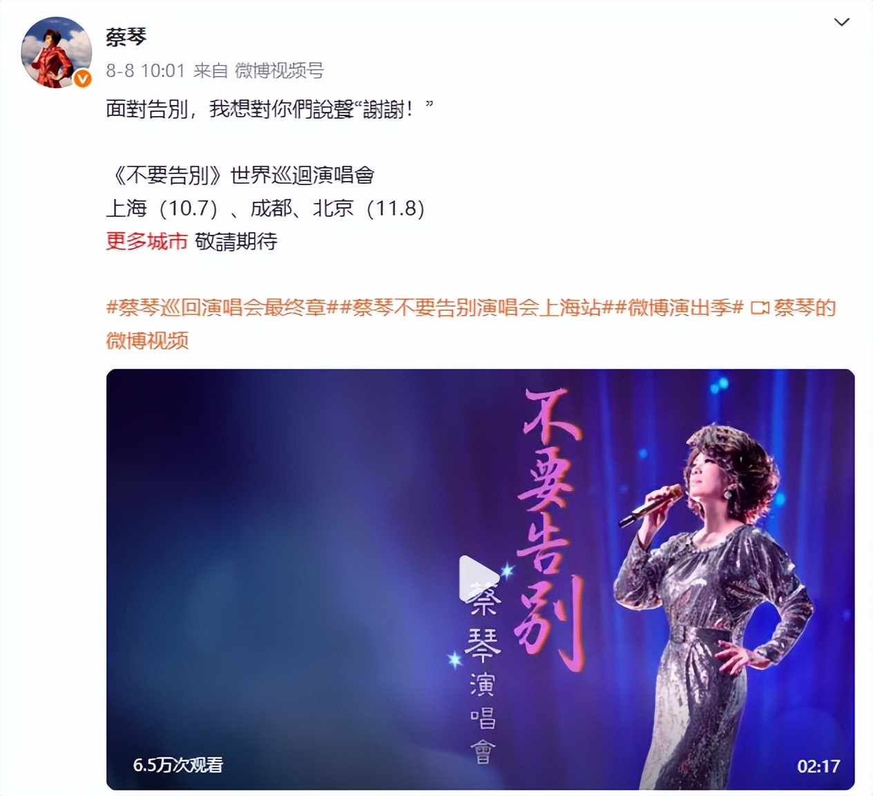 最终章不意味着告别,毕竟就像演唱会的主题那样,蔡琴不会对自己的歌迷告别,不告别才是最美的重逢。