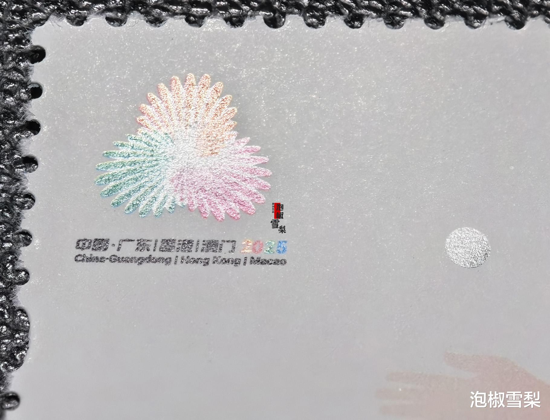 邮票整体光泽度一般,颜色部分有较为明显的反光感,其中面值、票名均由银色油墨印刷,正面观察时呈现灰色,荧光观察时有银白色金属光泽。