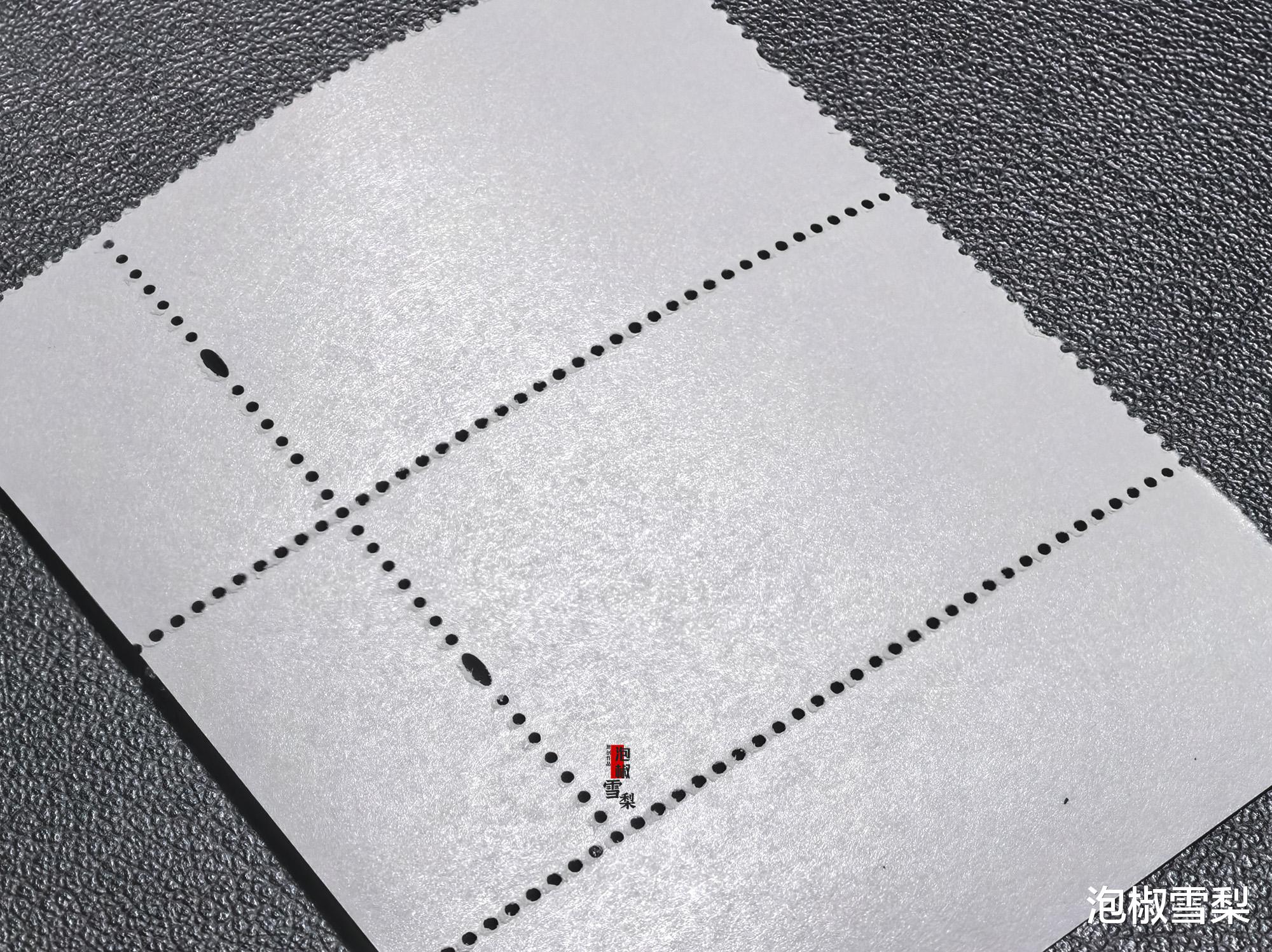 背面齿孔处有较多纸屑残余,但齿孔处残胶不多。