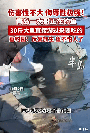 因为时间隔得久,圈叔在后续也刷到过事发垂钓园的解释视频。垂钓园方解释说:这鱼其实是个“老熟人”,它之前被钓上来过,后来被放生。反复几次放生之后,鱼就彻底不怕人了,也见惯了人来人往。只要是饿了,干脆就靠近岸边找口吃的,而表现方式,你已经见识过一次了,对,没错,就是“上门讨饭”这一招。