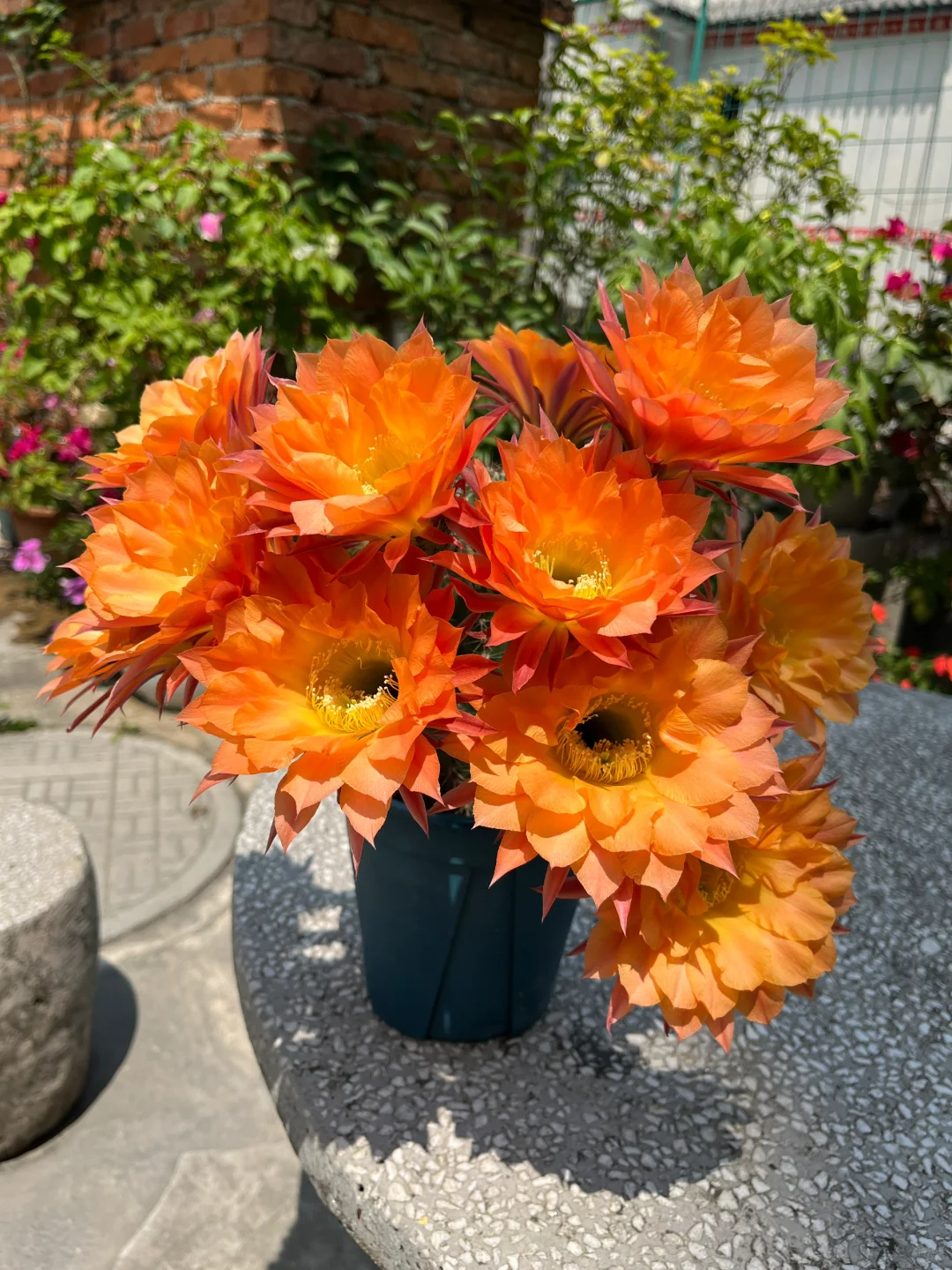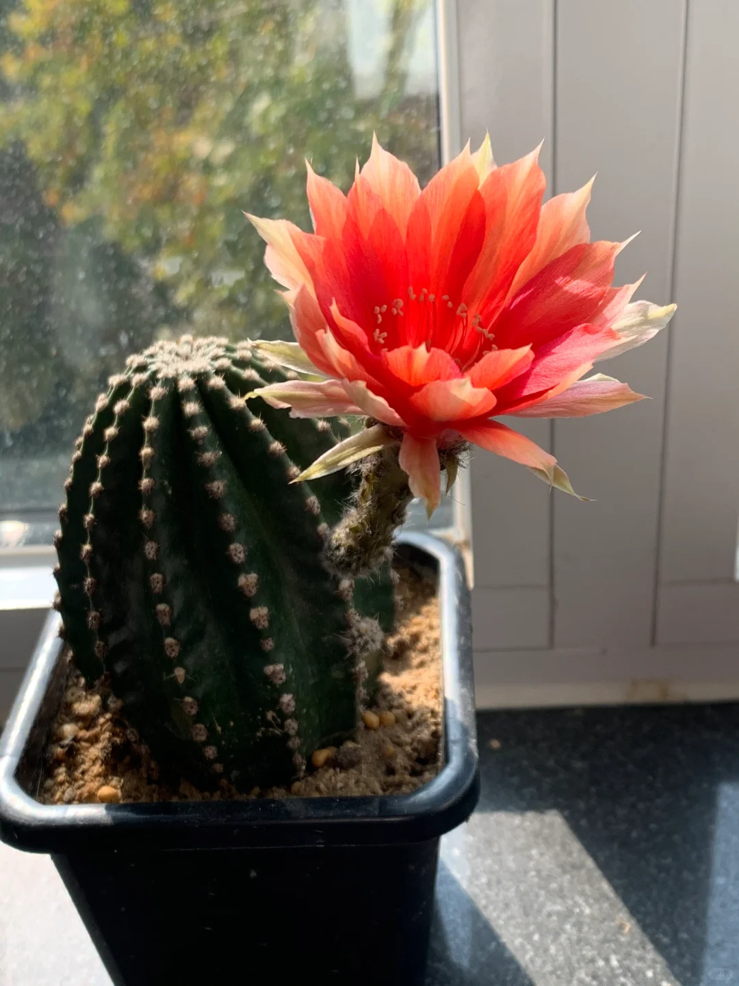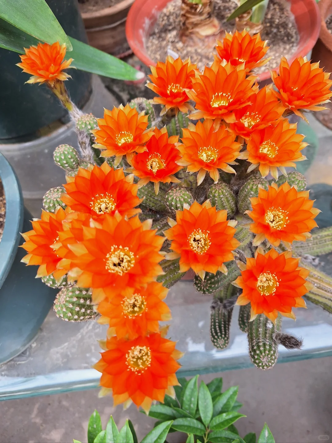 这种可以开出橙红色花朵的仙人球,学名为:黑金刚,被誉为绿植中的“战斗机”,最大的特点是好养易活、开花勤又多。