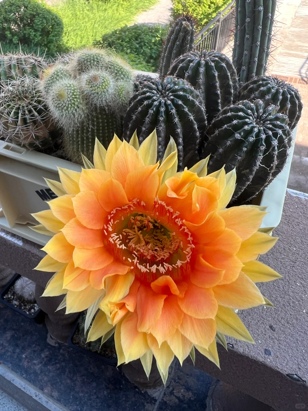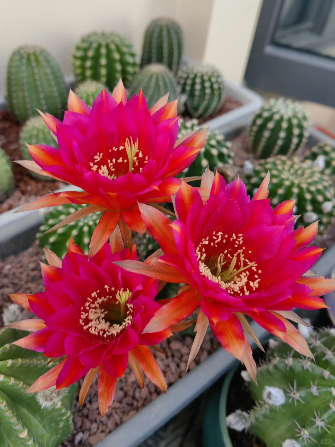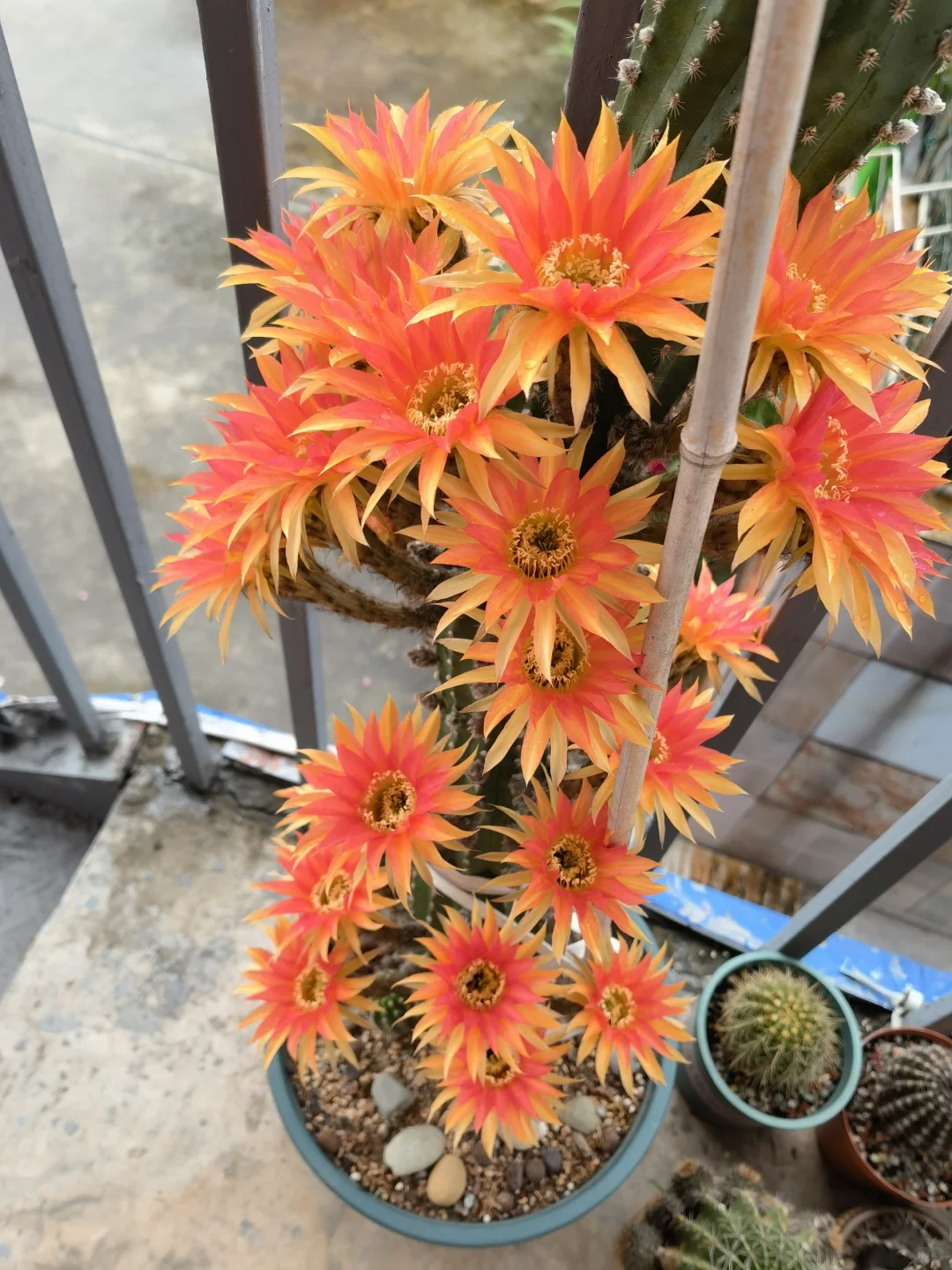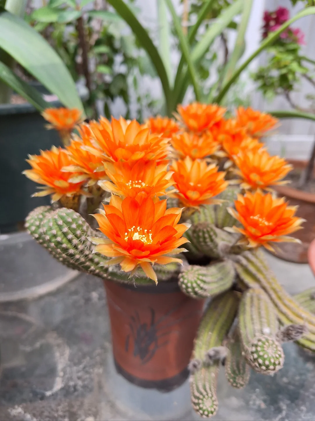 这种可以开出橙红色花朵的仙人球,学名为:黑金刚,被誉为绿植中的“战斗机”,最大的特点是好养易活、开花勤又多。