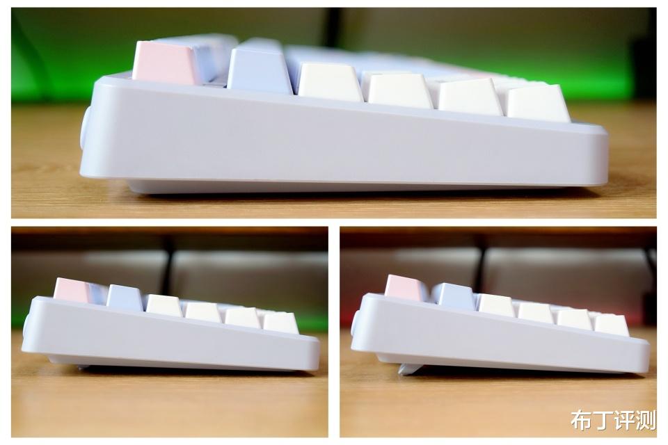 键盘的脚撑采用双段设计,搭配18mm的前高,能够带来三个不同的输入角度,对需要长时间使用键盘的用户来说十分实用,可以有效避免长时间使用键盘导致的手部疲劳。