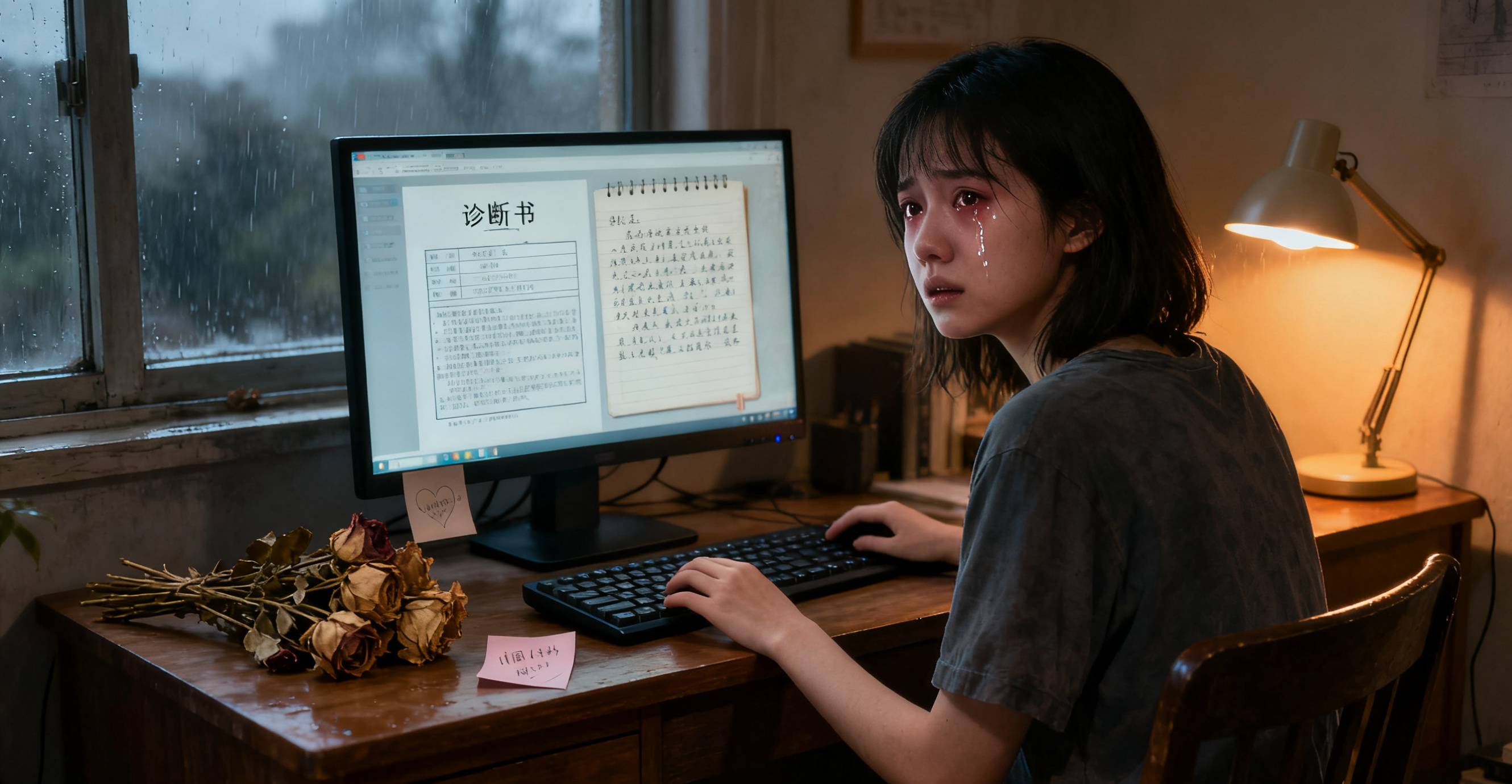 里面没有暧昧信息,只有一份胃癌诊断书和几十篇日记。
