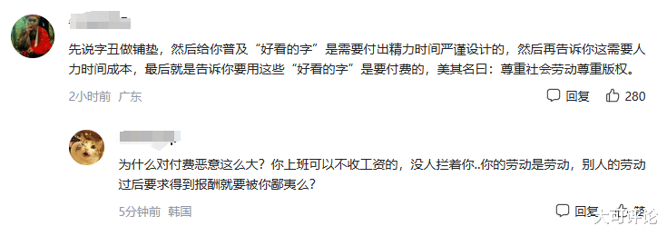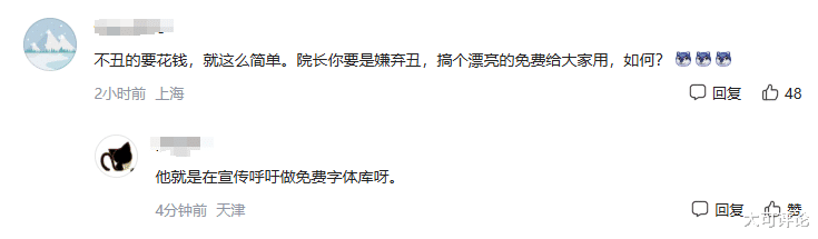 在评论区,支持邱志杰观点的网友认为,这类字体不过是“快餐式设计”的产物,毫无文化底蕴可言,长此以往,大众的审美水平必然退化。