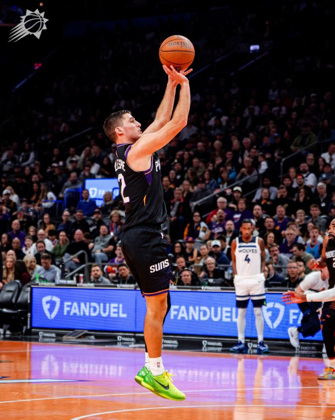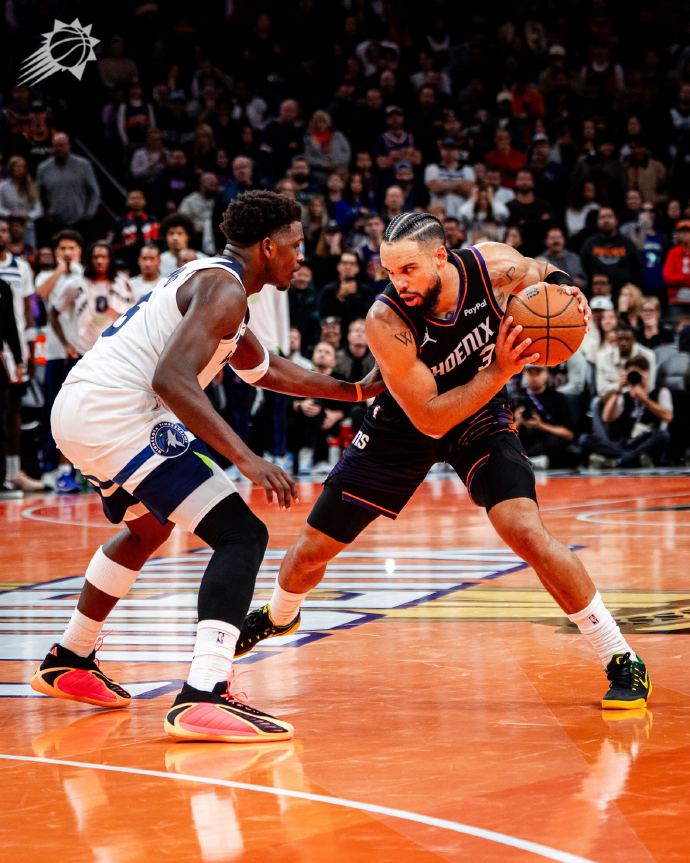 狄龙表现出色,出场37分钟,投篮17中8,三分球8中4,罚球4中2,拿到22分5篮板1助攻2抢断的数据,最后也拼到六犯离场。狄龙本赛季场均也可以得到21分3.3板2助2.1抢断,出战时太阳战绩为7胜3负。