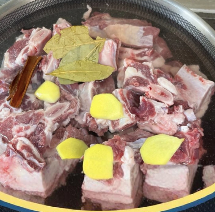 牛排骨剁成5厘米段(买时让摊主帮忙),冷水下锅加入姜、桂皮、香叶、两勺料酒。水沸后浮沫会像集体越狱般涌上来,这时候要眼疾手快捞干净。焯好的排骨用温水冲洗,千万别用冷水!否则肉质会像受惊的刺猬般收缩,影响后续入味。
