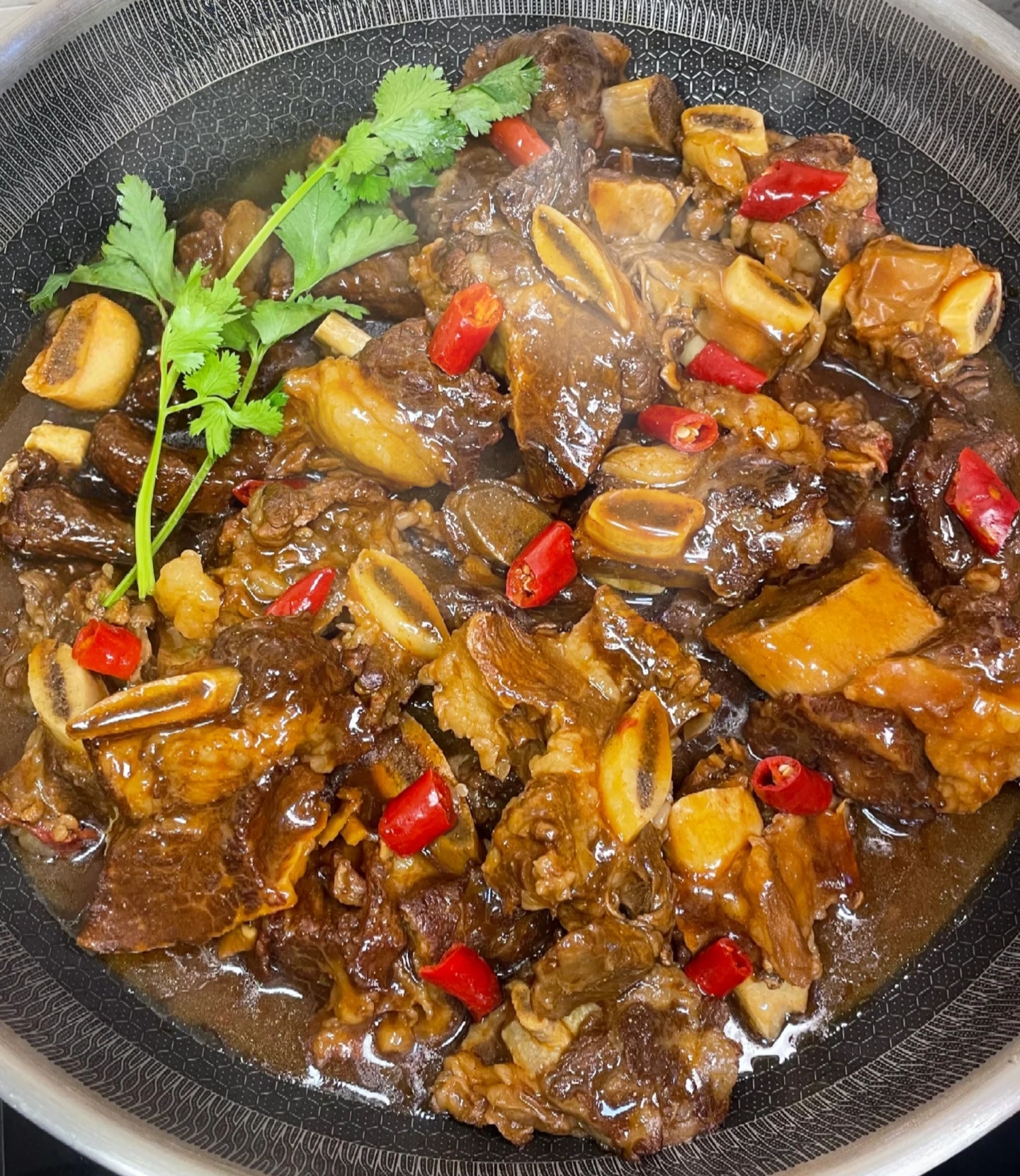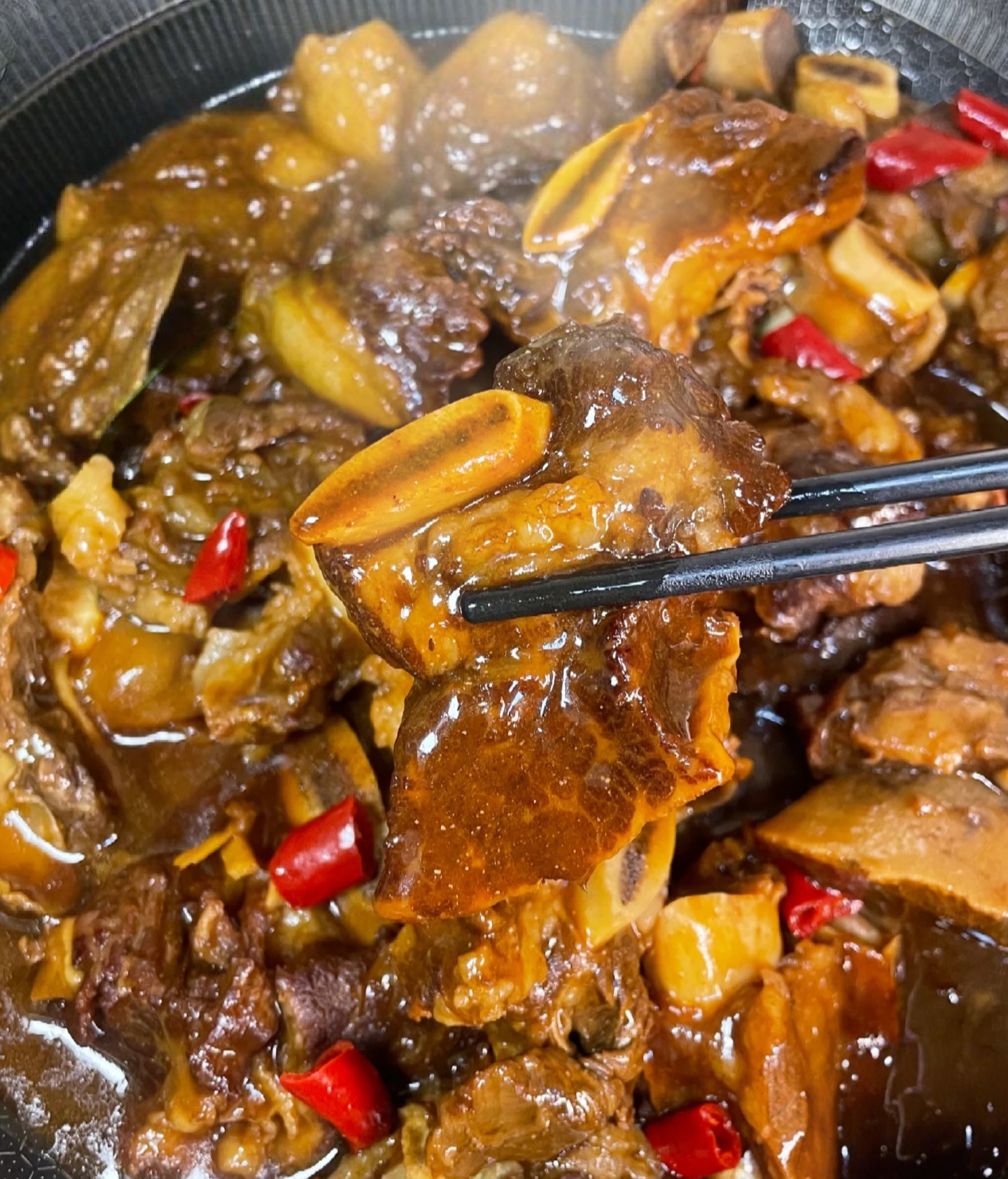 “咕嘟,咕嘟”琥珀色的酱汁裹着油亮的牛排骨正冒着欢快的泡泡,八角与桂皮的香气裹着肉香撞进鼻腔,连窗外的桂花香都被比下去了