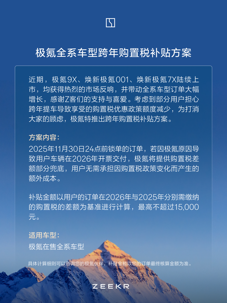 在服务层面,极氪同样走在前列。近期受核心零部件供应影响,部分车型交付周期延长。为此,极氪推出“安心等车三重保障”,涵盖每日等车积分、每周抽奖等权益,并率先在行业内推出全系车型购置税兜底补贴,切实缓解用户等车焦虑,践行“用户至上”承诺。