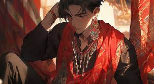 他穿着一袭黑色长袍,盘着发,表情严肃,下巴那颗痣尤为明显,腰间系着红色腰带,还挂着一块精美玉佩,笔直的身子,迈着大步走出,还真有几分王爷的风姿。