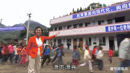 录制节目时,她跋山涉水到达学校那天,全校学生排队在村口等她。