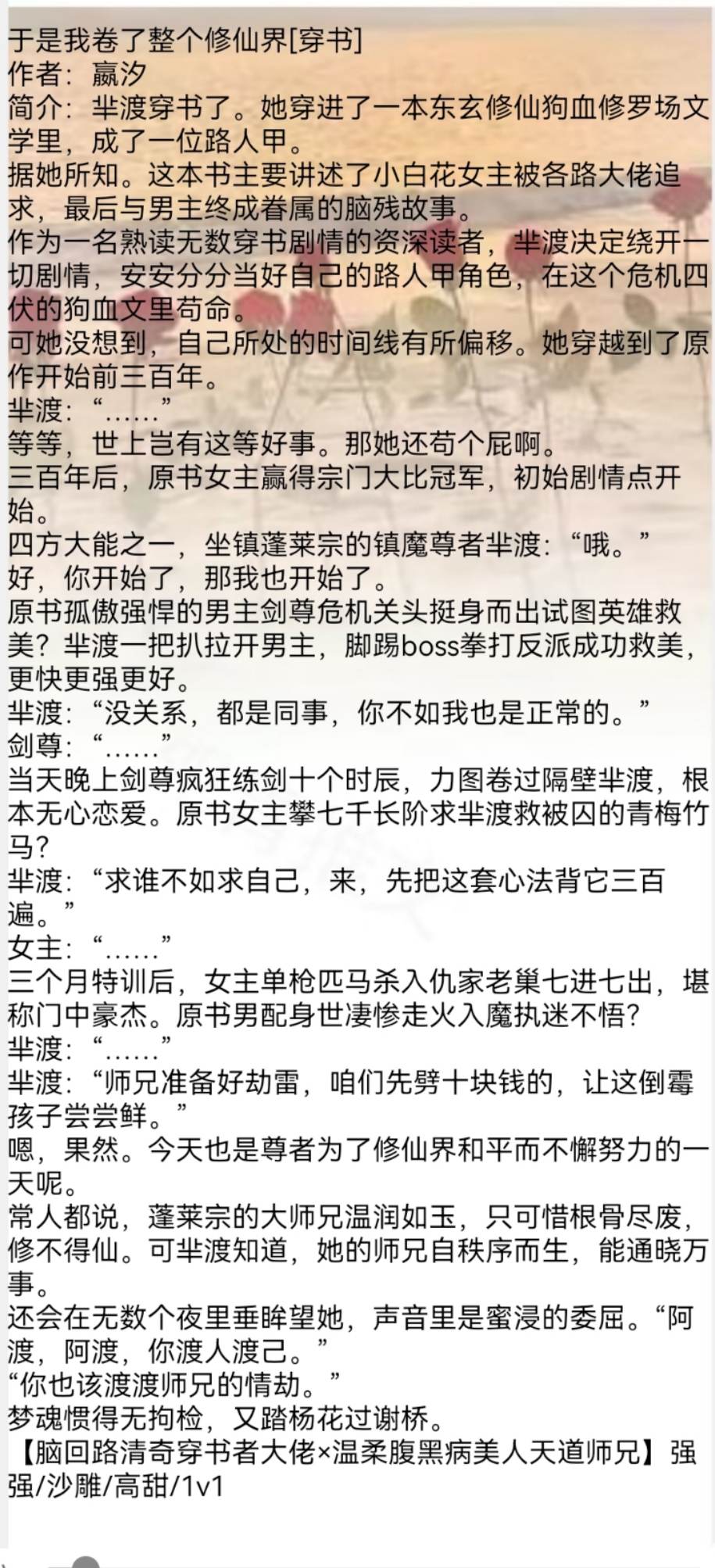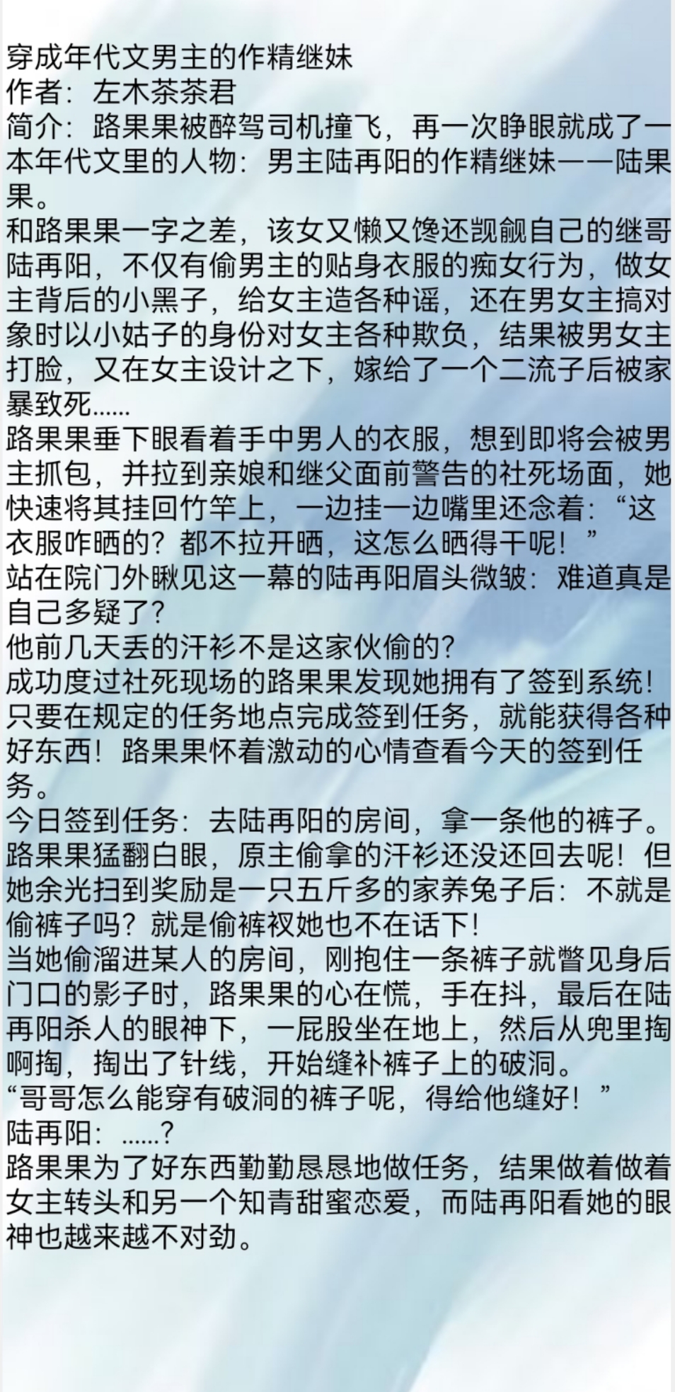 《我男朋友是神级哨兵?》作者:田园泡文章字数:530297字(完结)文章类型:穿书 复仇虐渣 虫族 轻松 哨向《穿成年代文男主的作精继妹》作者:左木茶茶君文章字数:219228字(完结)文章类型:甜文 穿书 轻松《我靠发疯整治修真界》作者:三日成晶文章字数:677188字(完结)文章类型:仙侠修真 甜文 穿书 逆袭 先婚后爱 HE《于是我卷了整个修仙界[穿书]》作者:嬴汐文章字数:335686字(完结)文章类型:强强 灵异神怪 情有独钟 爽文 沙雕