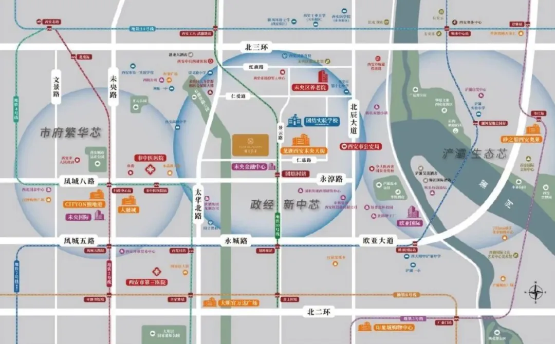 项目处于正在快速发展的团结村板块,板块内地铁10号线、4号线等完善,龙湖未央天街、团结实验学校,红旗铁路公园等近在咫尺,生活非常便利。