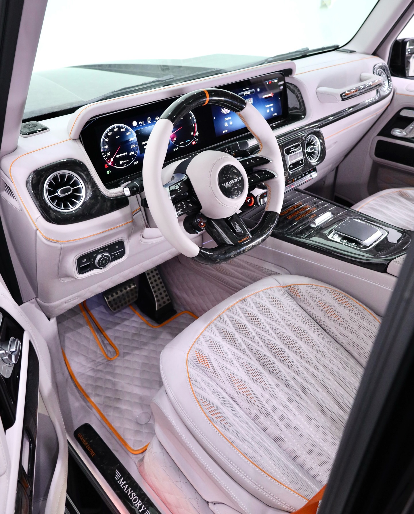 MERCEDES BENZ G-63 MANSORY 1 OF 8 GRANDE ENTREE LIMITED EDITION + AKRAPOVIC EXHAUST UPGARDEYEAR: 2025MILEAGE: 800 KMCOLOUR EXT/INT : BLACK / ARCTIC WHITE & ORANGEWARRANTY UPON REQUEST梅赛德斯 - 奔驰 G63 迈莎锐 1/8 限量版「GRANDE ENTREE」天蝎排气升级年份:2025里程:800 公里外观 / 内饰颜色:黑色 / 极地白 & 橙色质保:可咨询